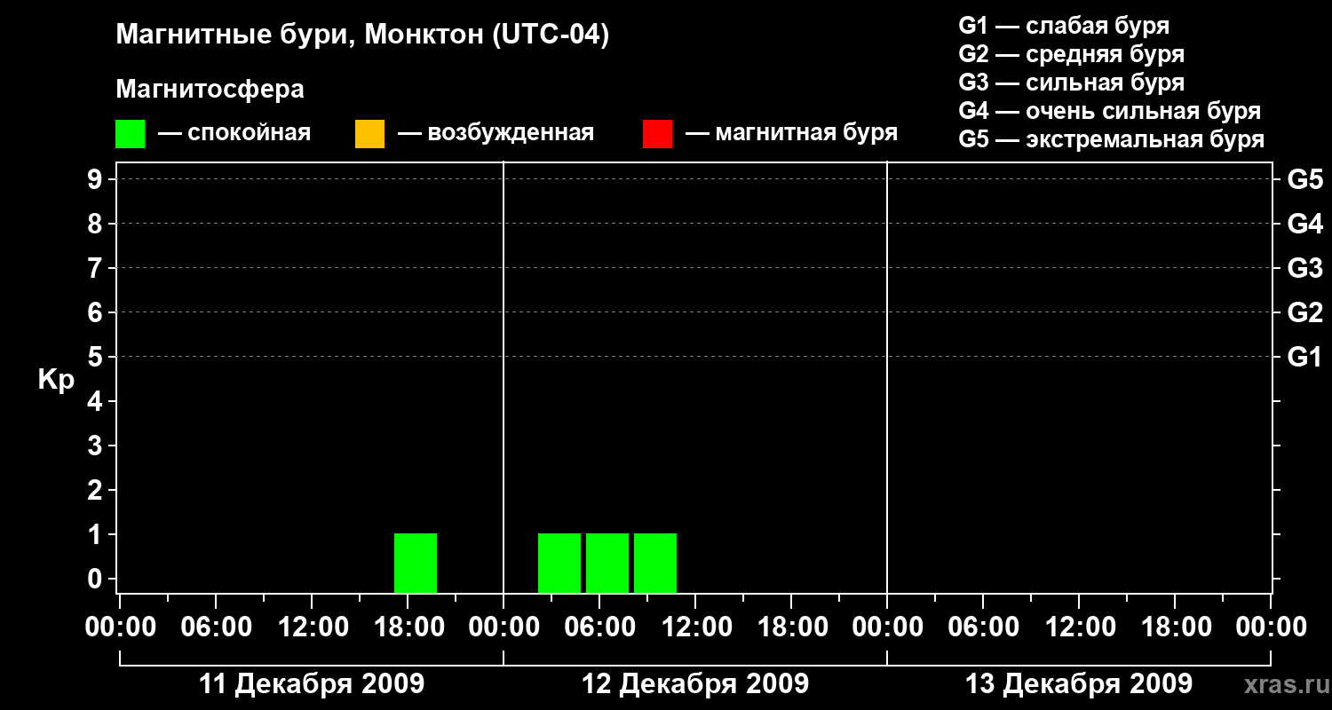 Магнитные бури в Монктоне — 13 декабря 2009 года