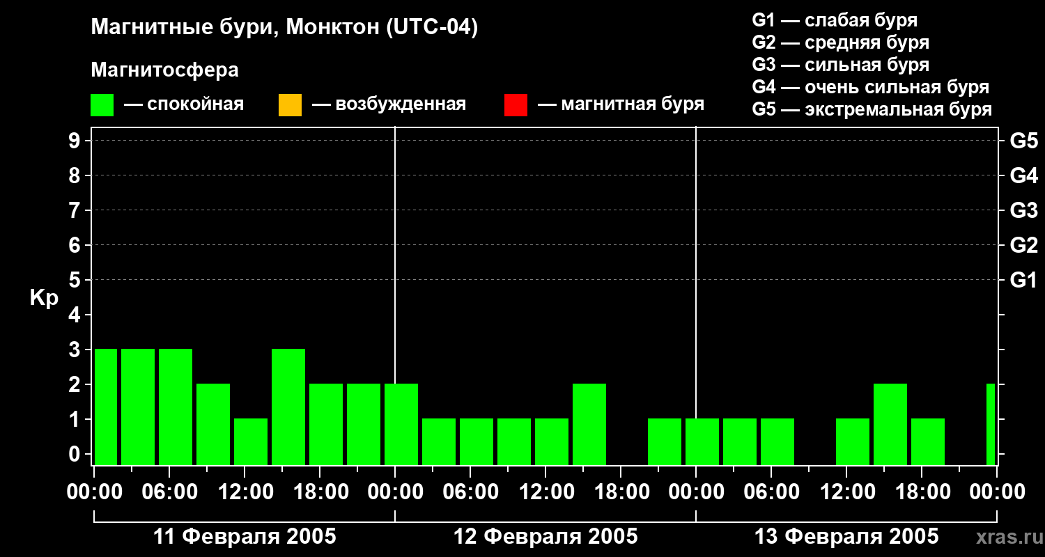 Магнитные бури в Монктоне — 13 февраля 2005 года