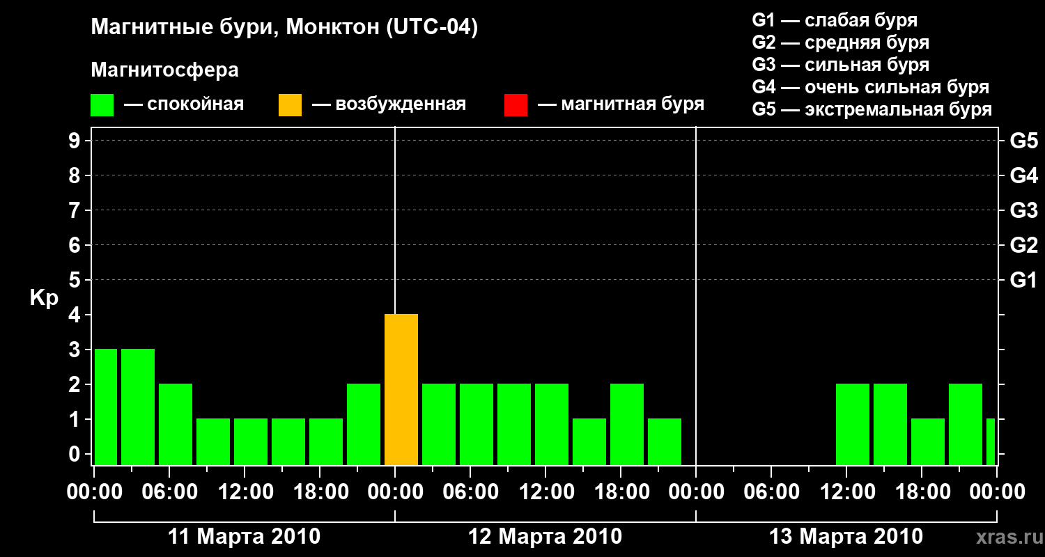 Магнитные бури в Монктоне — 13 марта 2010 года
