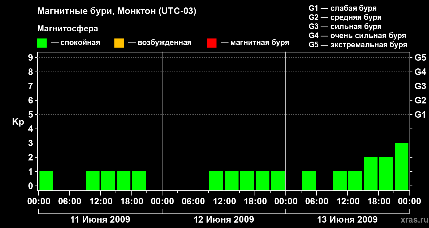 Магнитные бури в Монктоне — 13 июня 2009 года