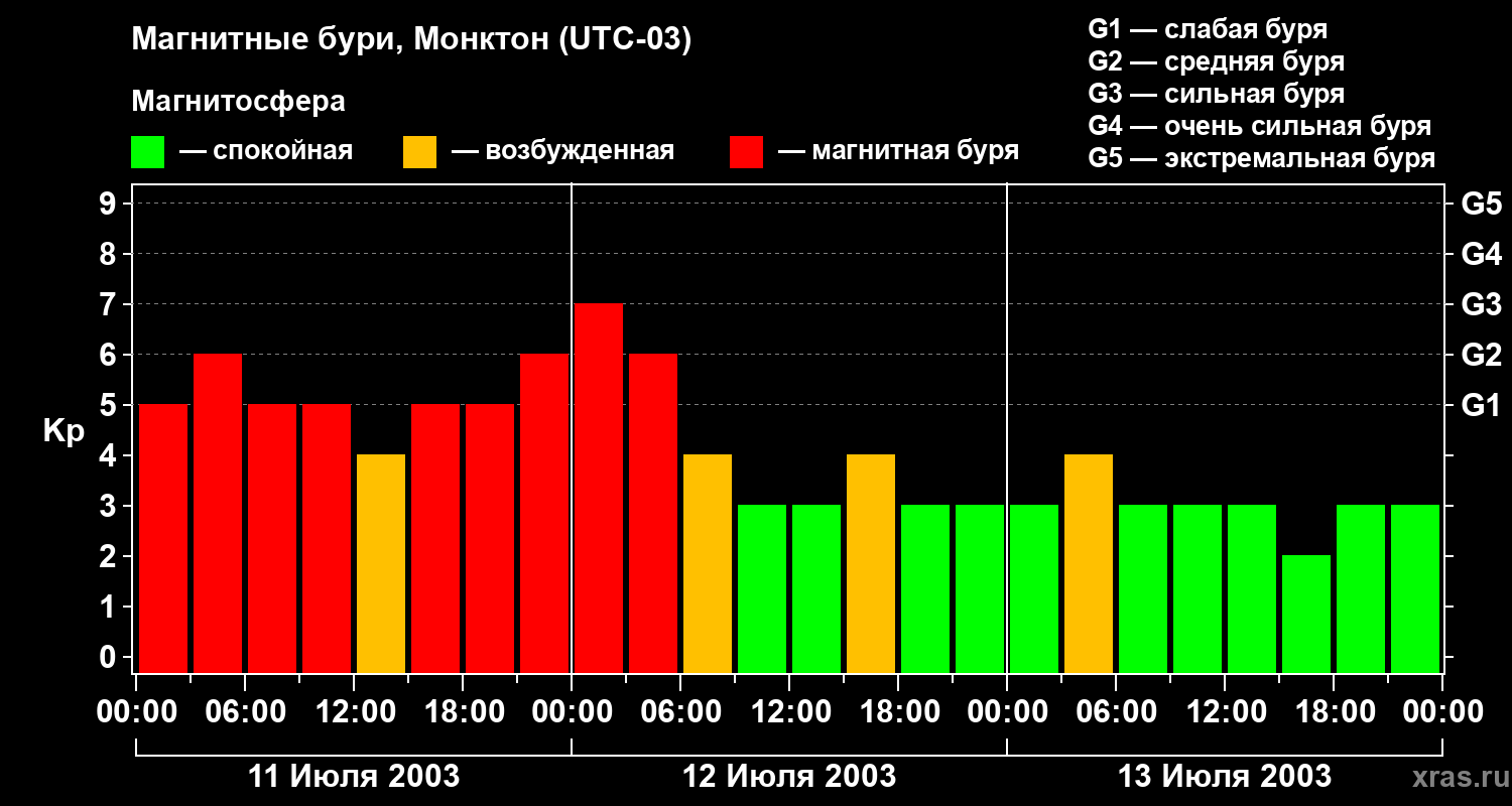 Магнитные бури в Монктоне — 13 июля 2003 года