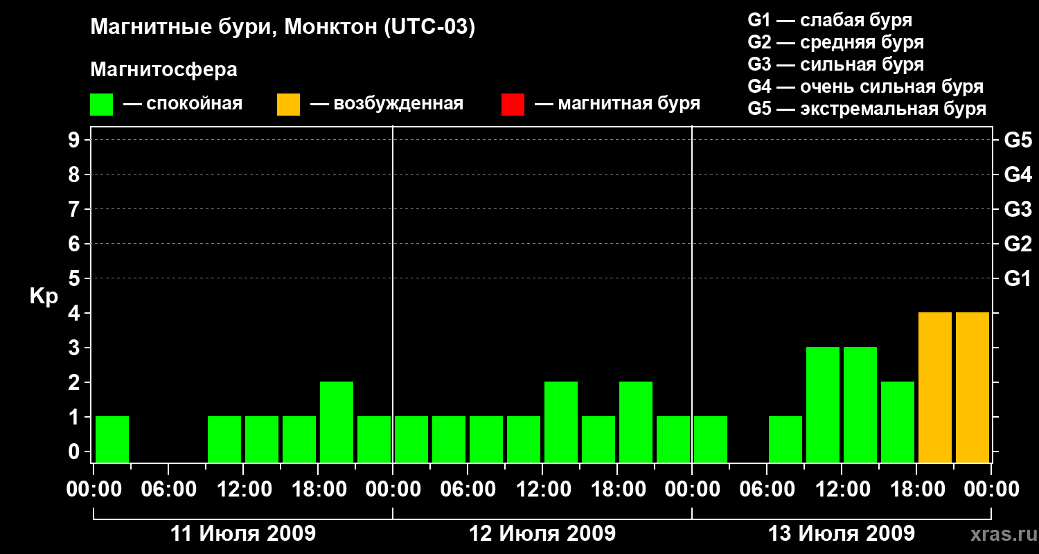 Магнитные бури в Монктоне — 13 июля 2009 года