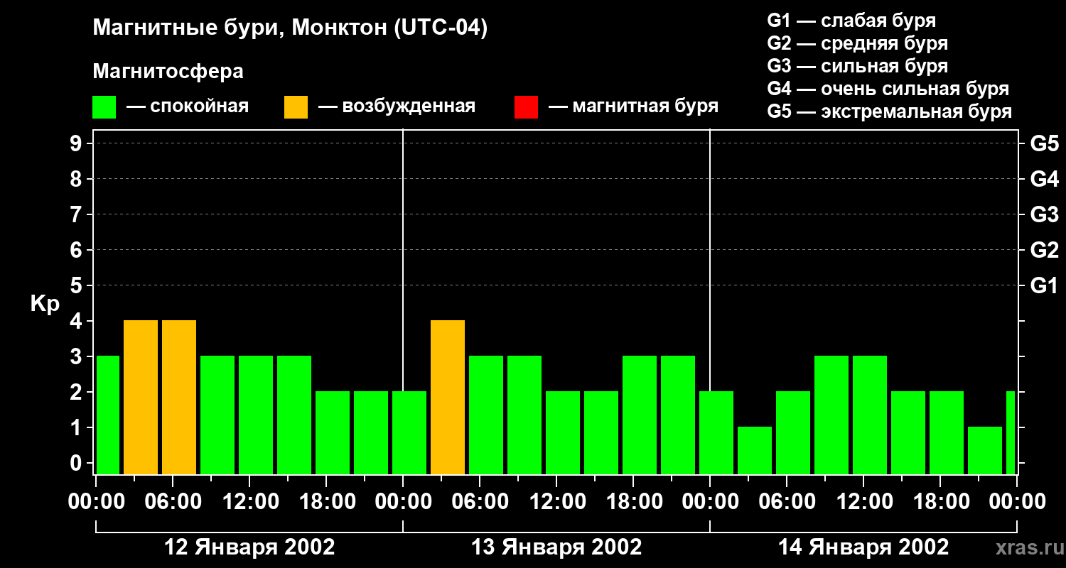 Магнитные бури в Монктоне — 14 января 2002 года