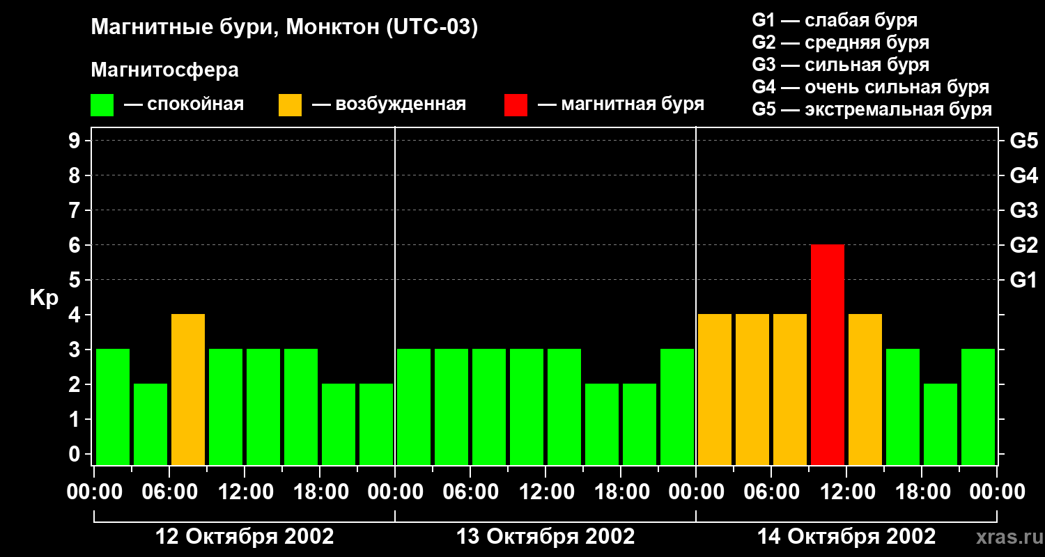 Магнитные бури в Монктоне — 14 октября 2002 года
