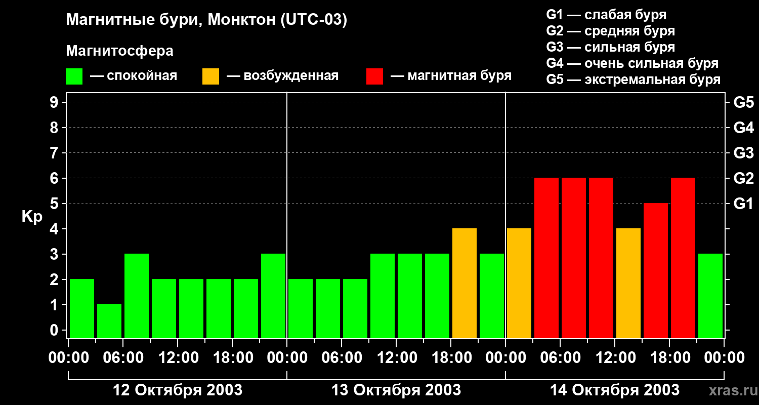 Магнитные бури в Монктоне — 14 октября 2003 года