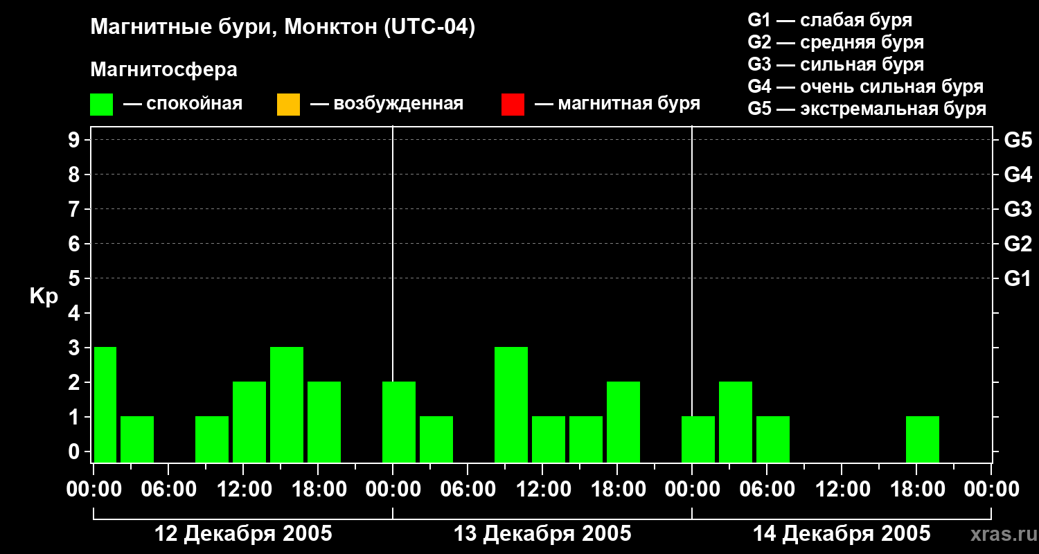 Магнитные бури в Монктоне — 14 декабря 2005 года