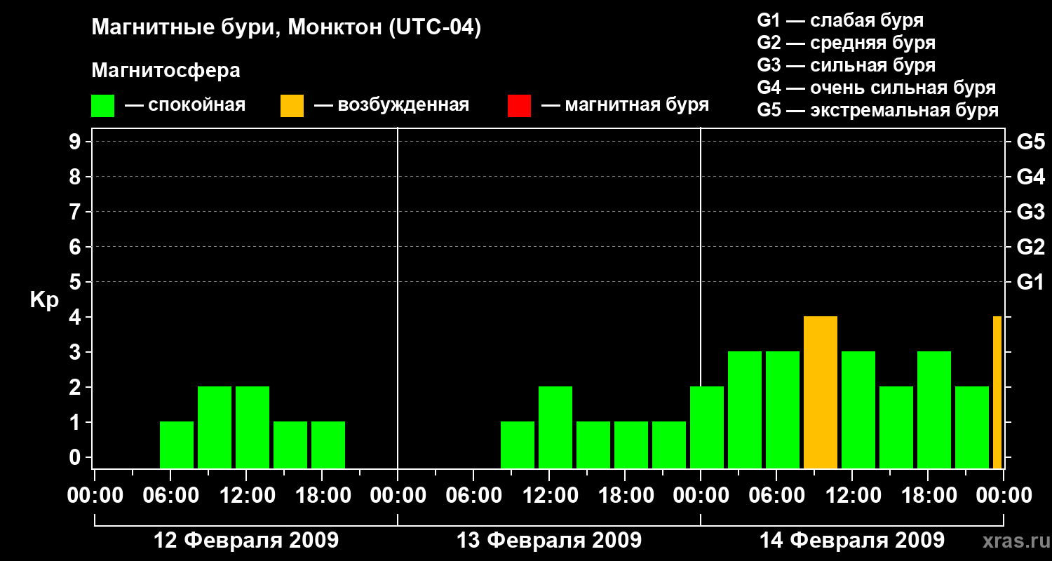 Магнитные бури в Монктоне — 14 февраля 2009 года