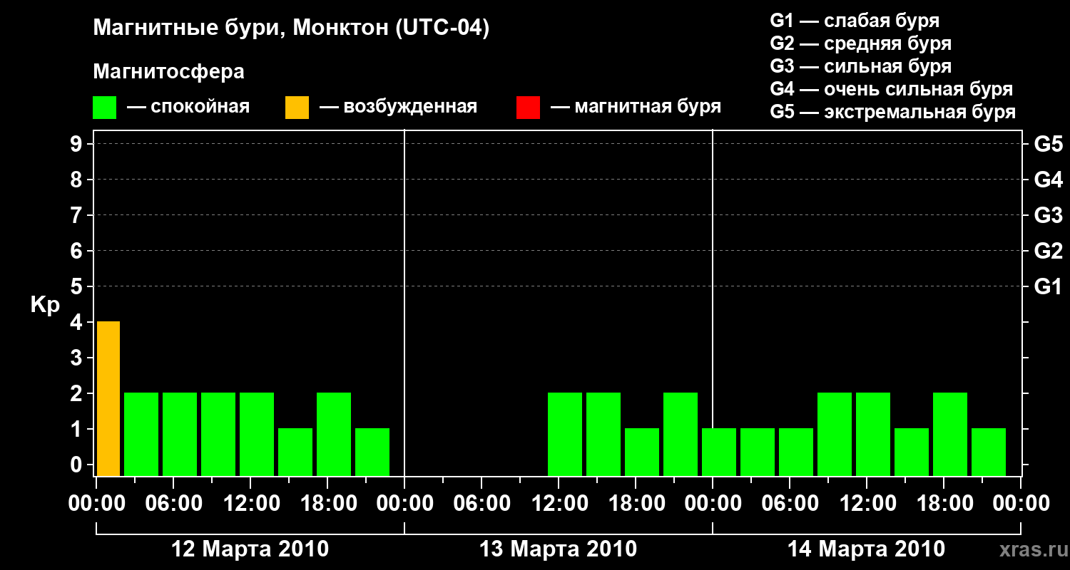 Магнитные бури в Монктоне — 14 марта 2010 года
