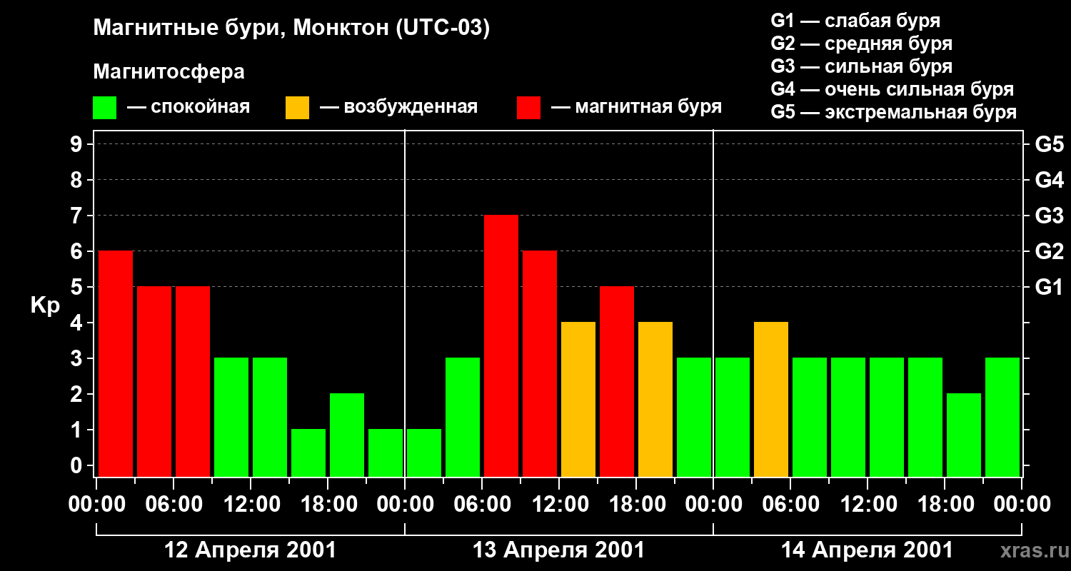 Магнитные бури в Монктоне — 14 апреля 2001 года