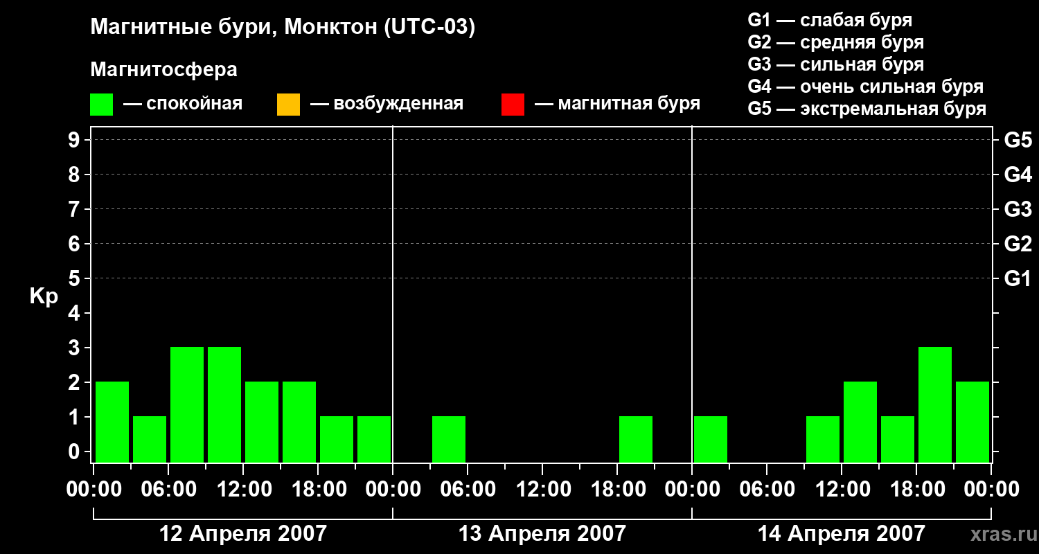 Магнитные бури в Монктоне — 14 апреля 2007 года