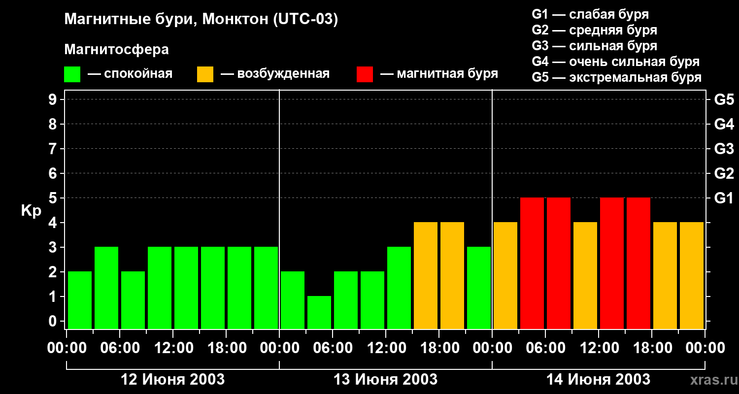 Магнитные бури в Монктоне — 14 июня 2003 года