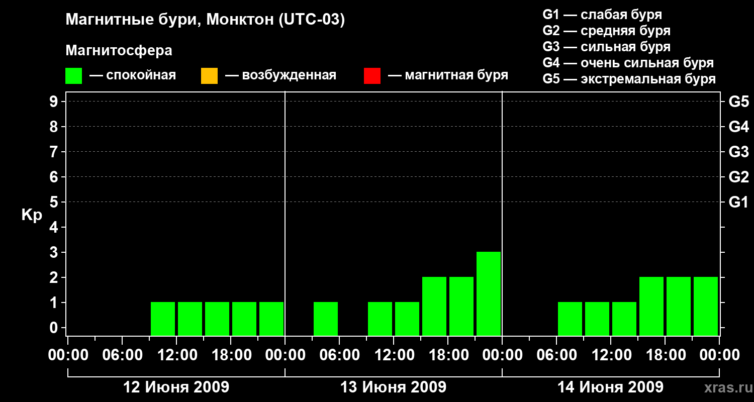 Магнитные бури в Монктоне — 14 июня 2009 года