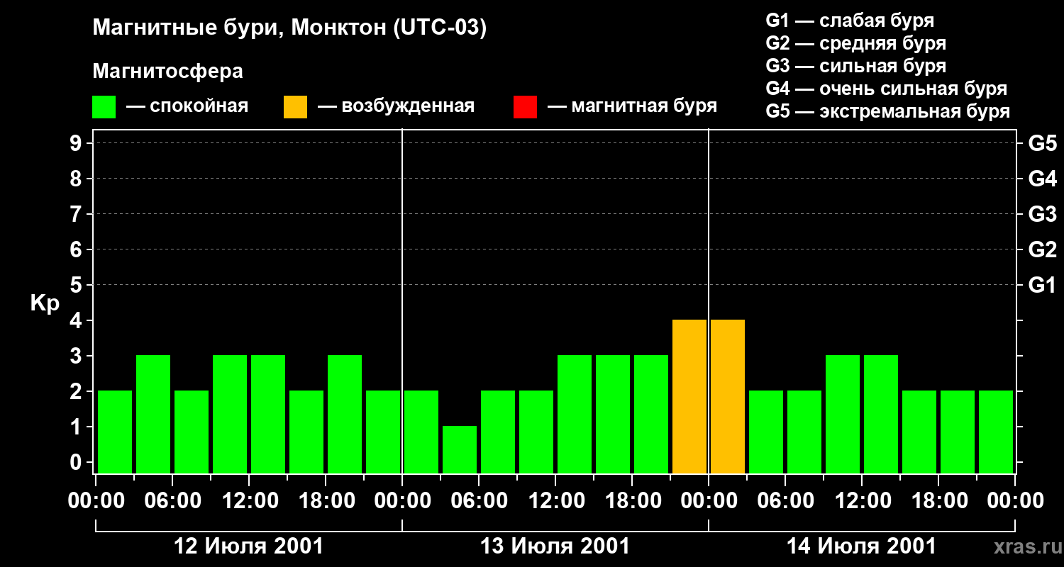 Магнитные бури в Монктоне — 14 июля 2001 года