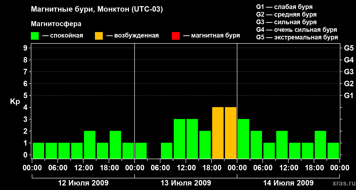 Магнитные бури в Монктоне — 14 июля 2009 года