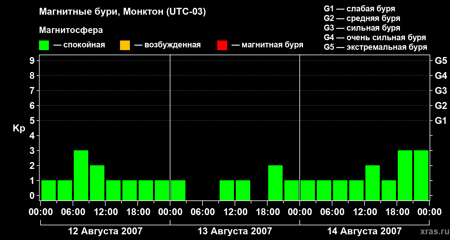 Магнитные бури в Монктоне — 14 августа 2007 года