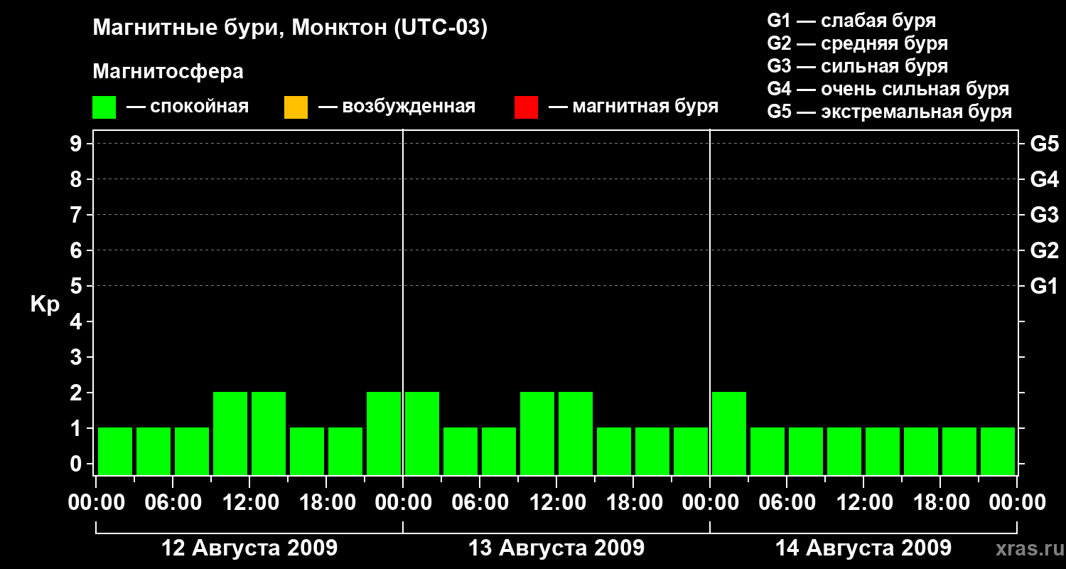 Магнитные бури в Монктоне — 14 августа 2009 года