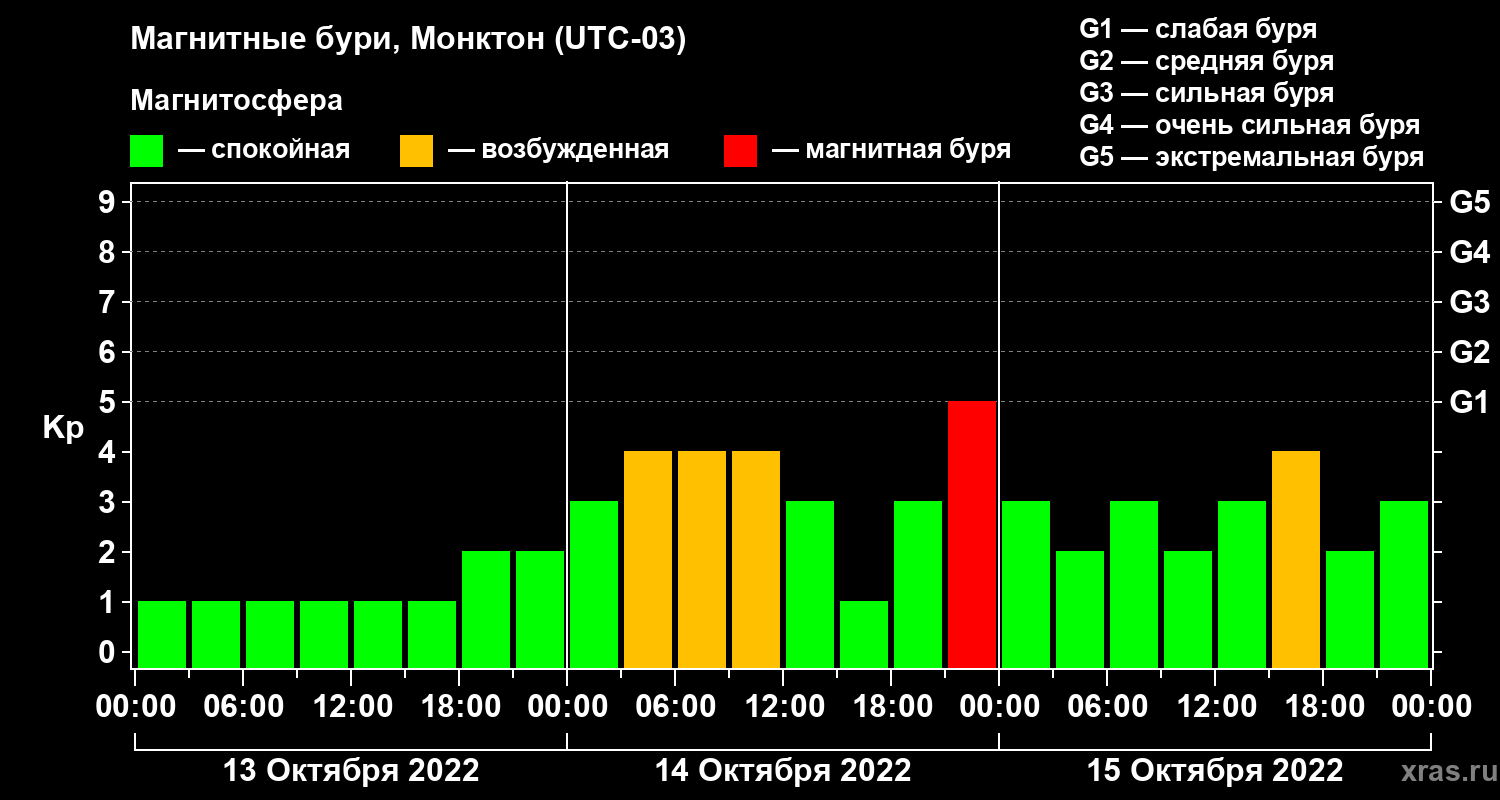 Магнитные бури в Монктоне 15 октября 2022 года