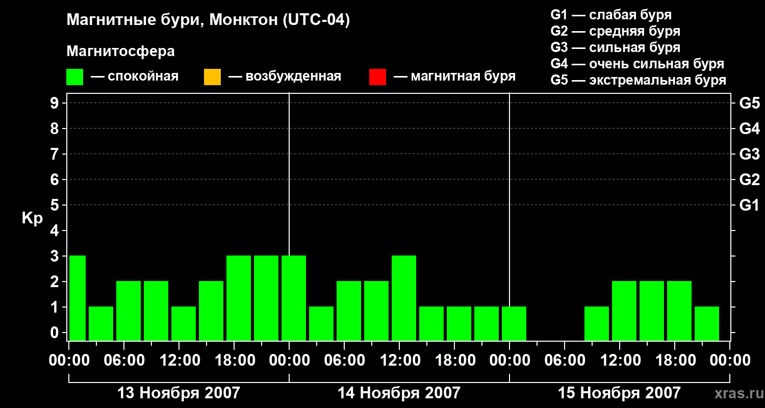 Магнитные бури в Монктоне — 15 ноября 2007 года