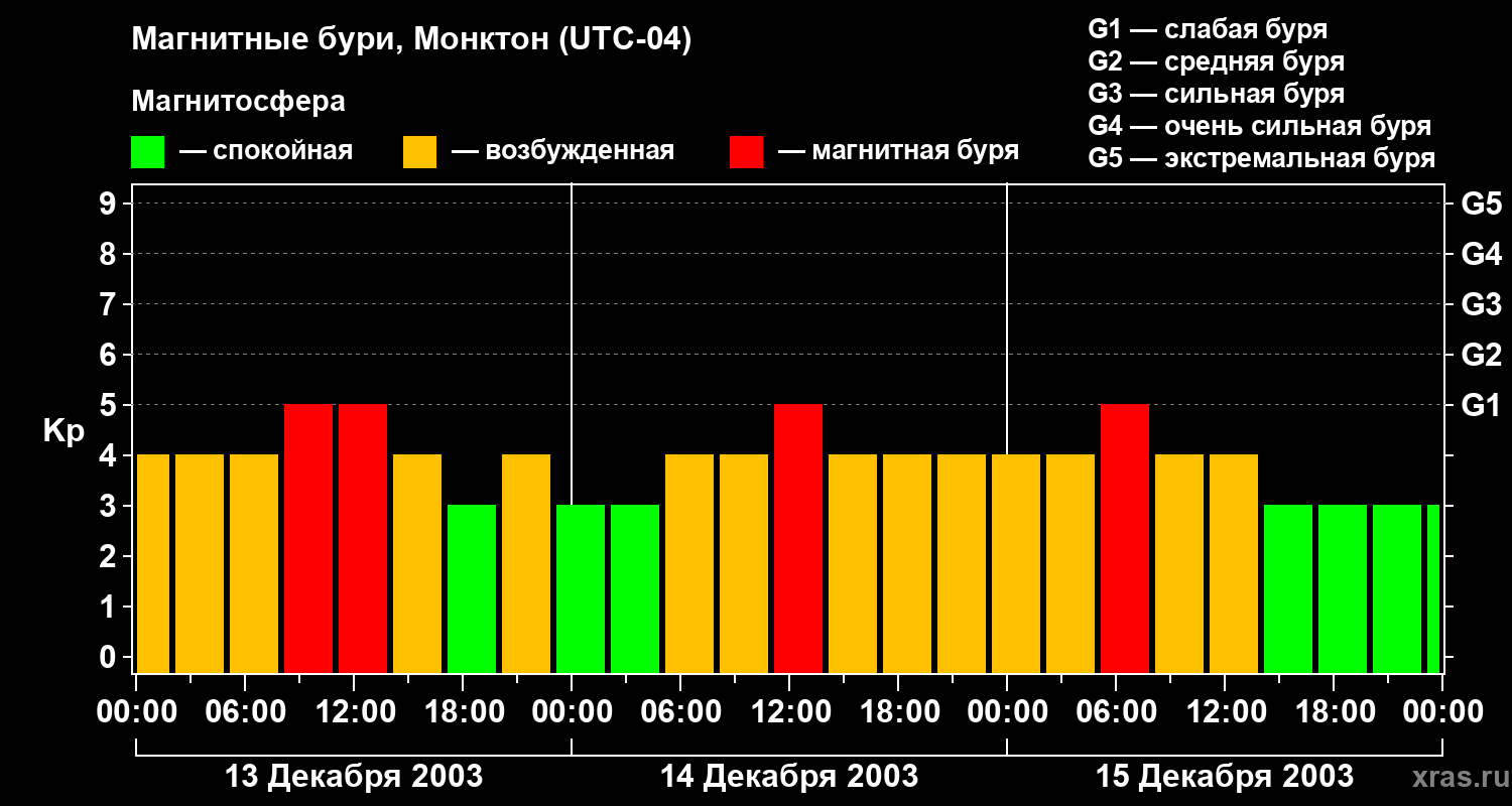 Магнитные бури в Монктоне — 15 декабря 2003 года