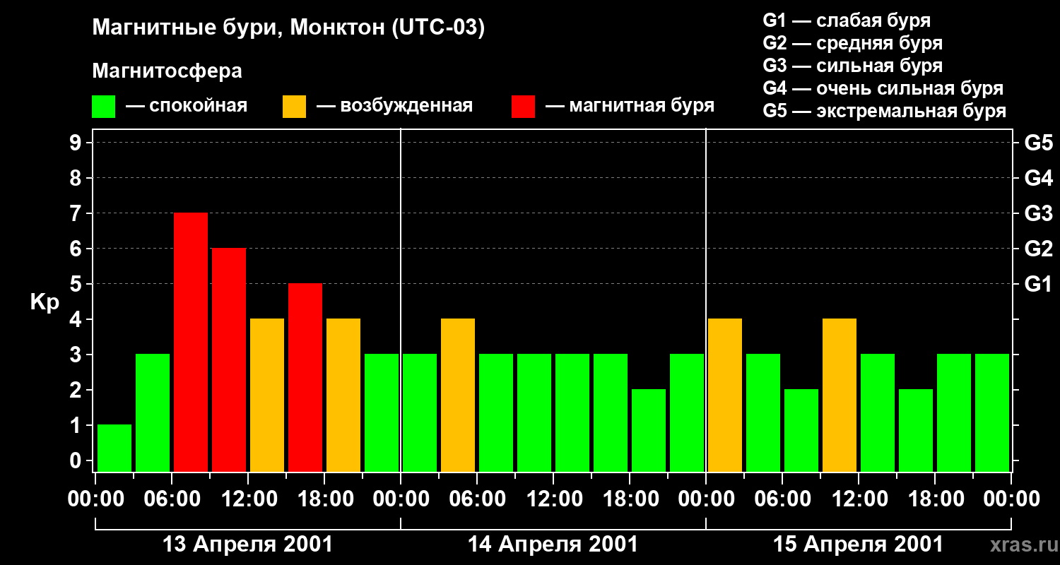 Магнитные бури в Монктоне — 15 апреля 2001 года