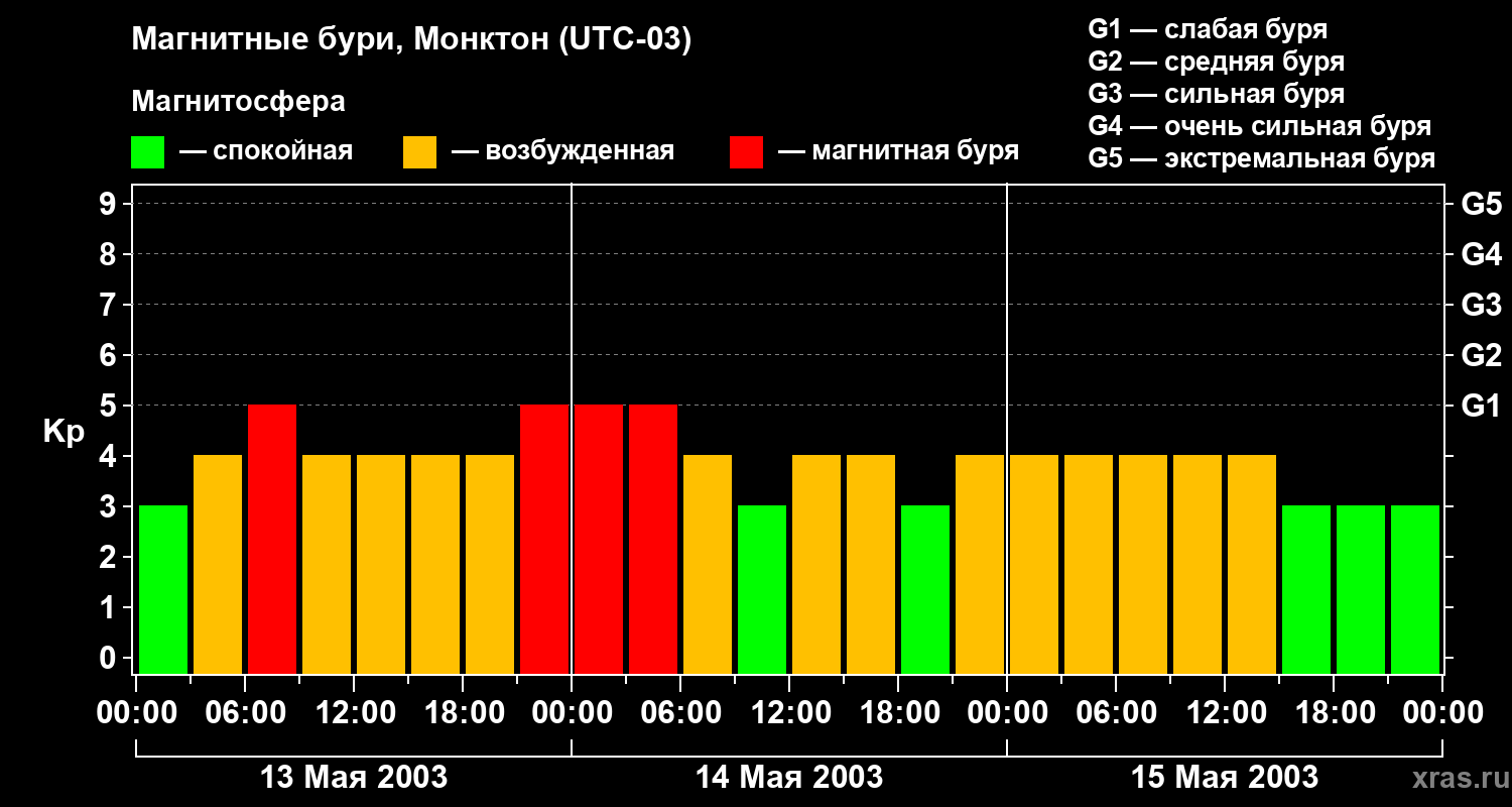 Магнитные бури в Монктоне — 15 мая 2003 года