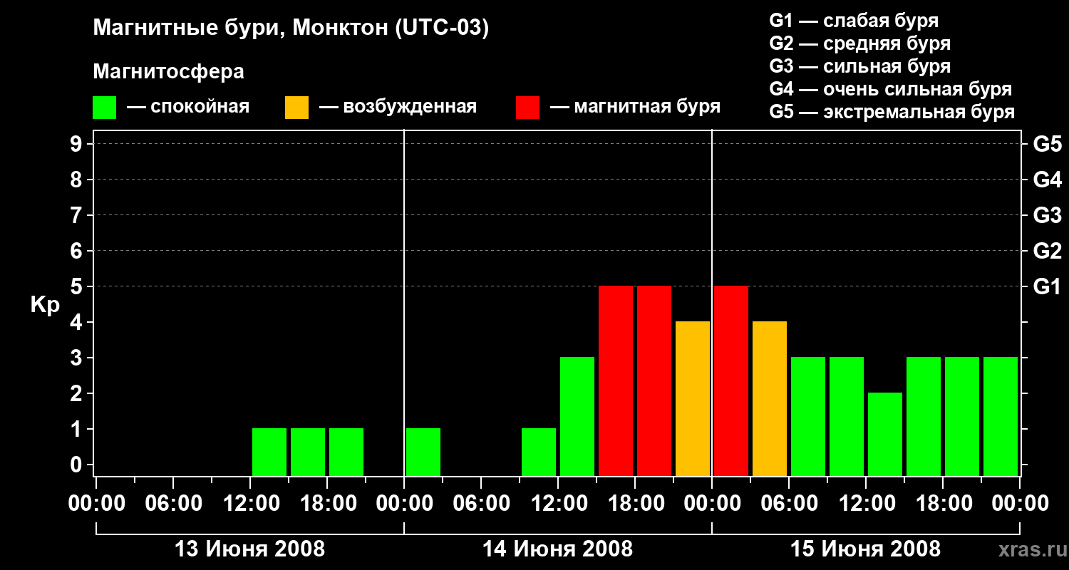Магнитные бури в Монктоне — 15 июня 2008 года