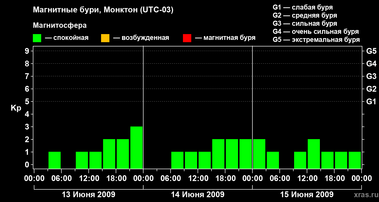 Магнитные бури в Монктоне — 15 июня 2009 года