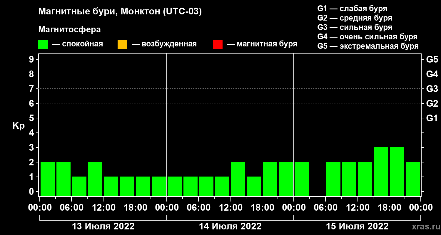 Магнитные бури в Монктоне — 15 июля 2022 года