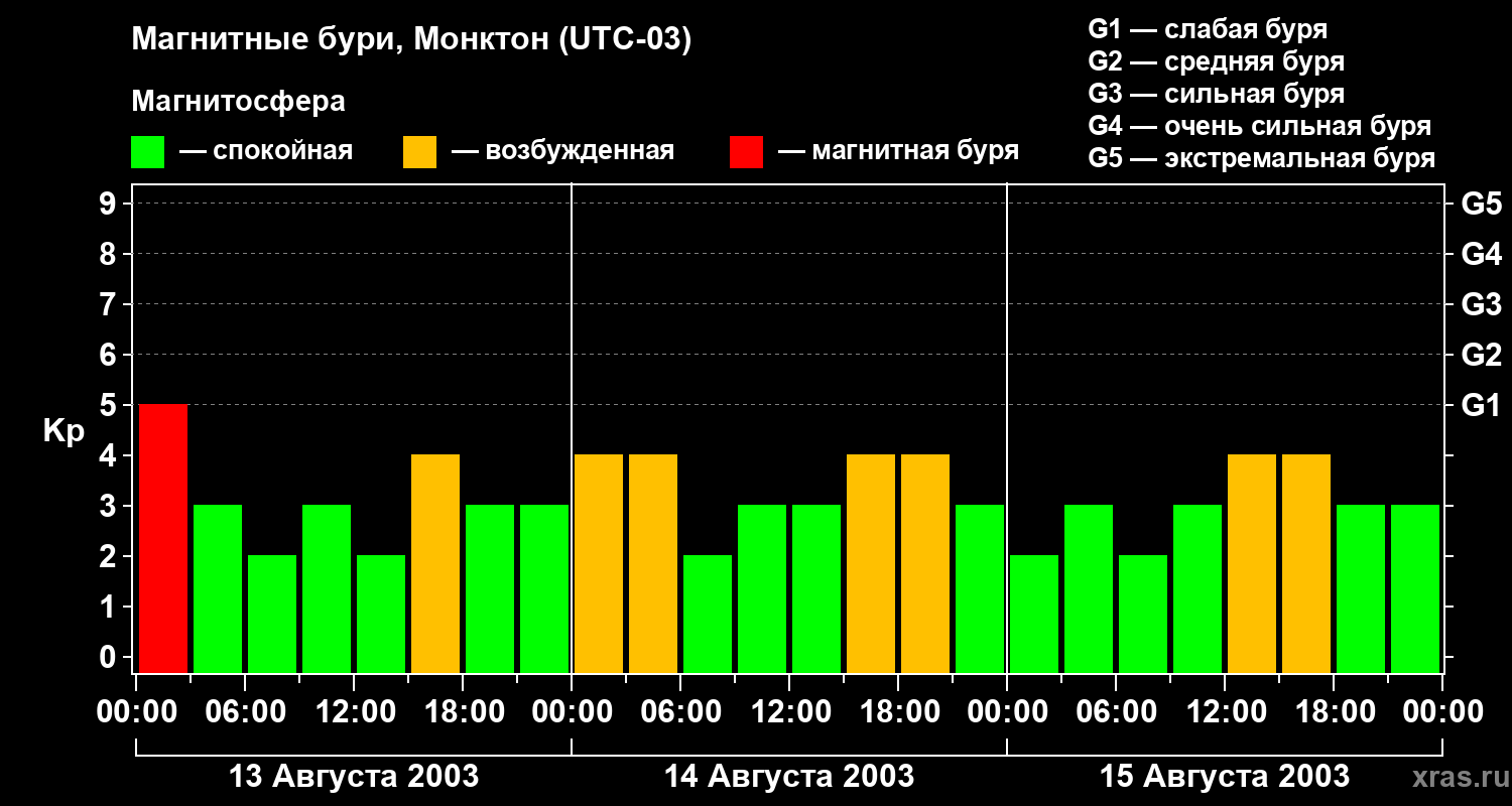 Магнитные бури в Монктоне — 15 августа 2003 года