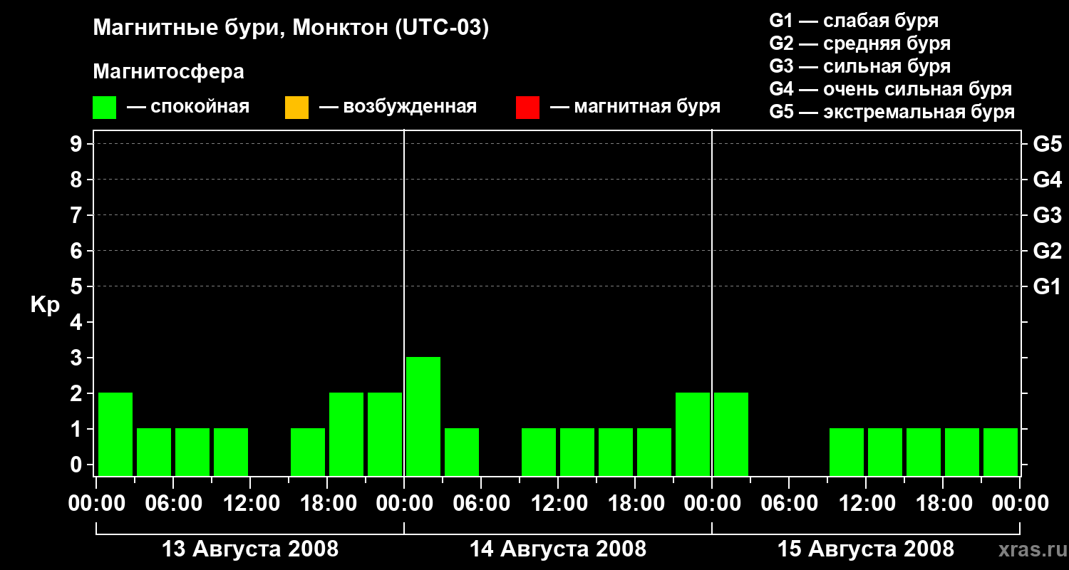 Магнитные бури в Монктоне — 15 августа 2008 года