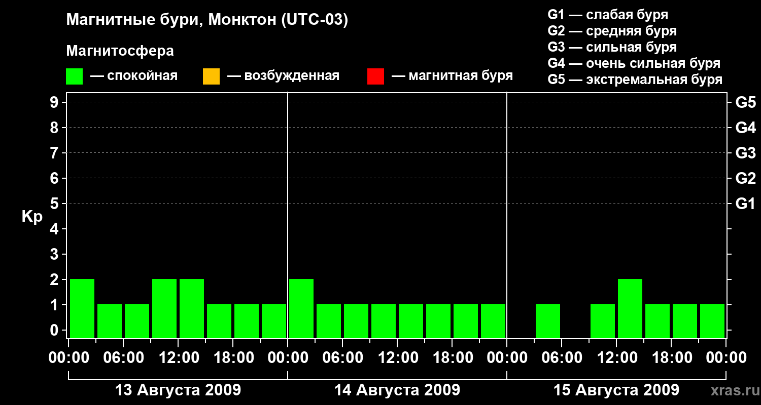 Магнитные бури в Монктоне — 15 августа 2009 года