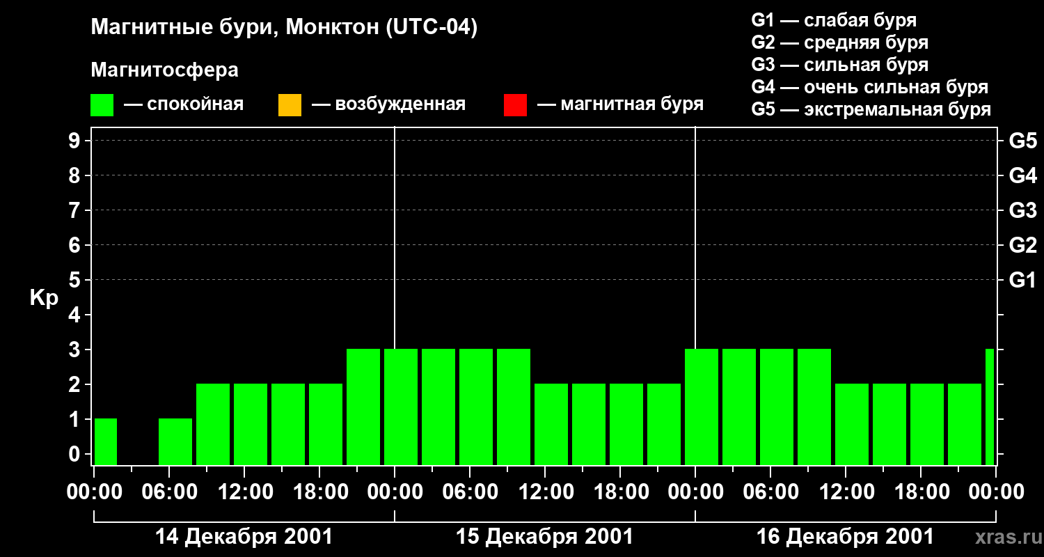 Магнитные бури в Монктоне — 16 декабря 2001 года