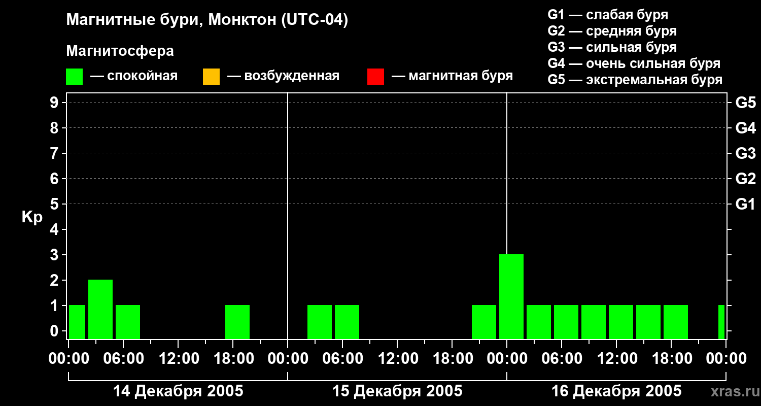Магнитные бури в Монктоне — 16 декабря 2005 года