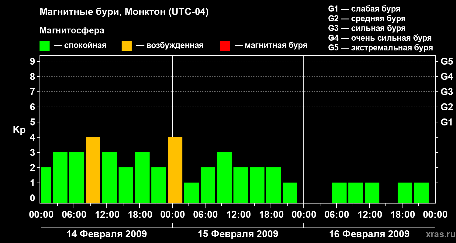 Магнитные бури в Монктоне — 16 февраля 2009 года