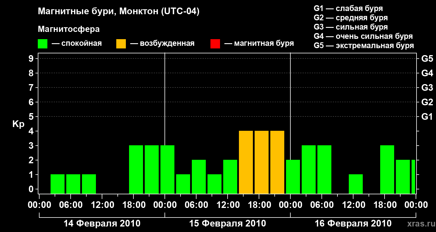 Магнитные бури в Монктоне — 16 февраля 2010 года