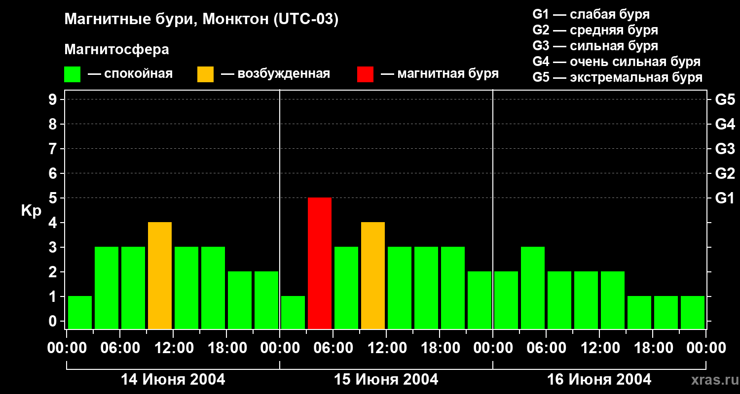 Магнитные бури в Монктоне — 16 июня 2004 года