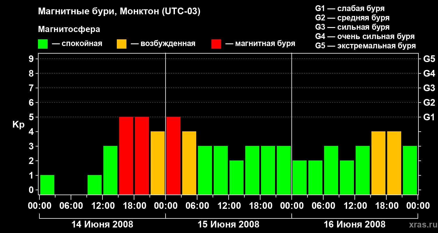 Магнитные бури в Монктоне — 16 июня 2008 года