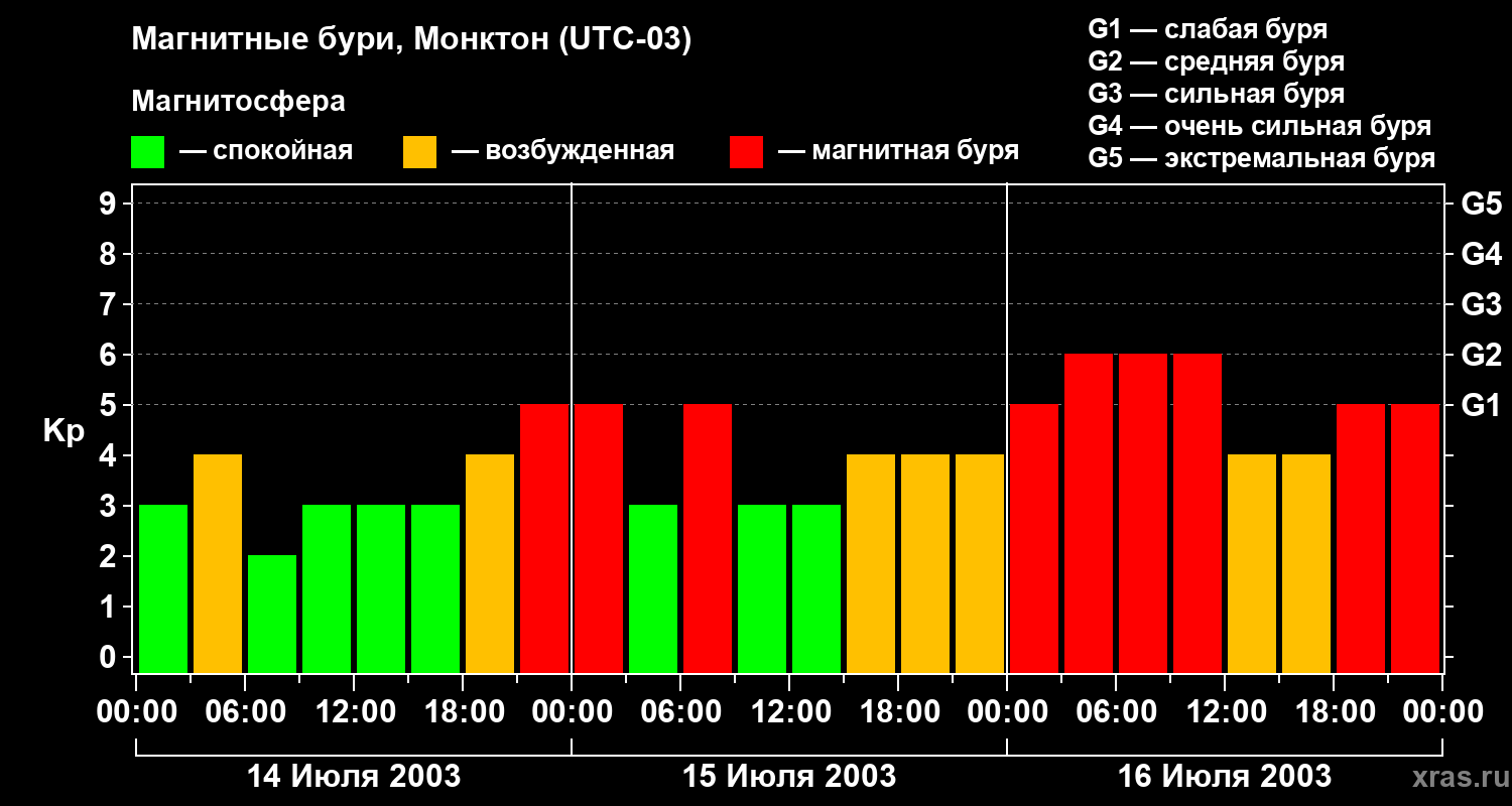 Магнитные бури в Монктоне — 16 июля 2003 года