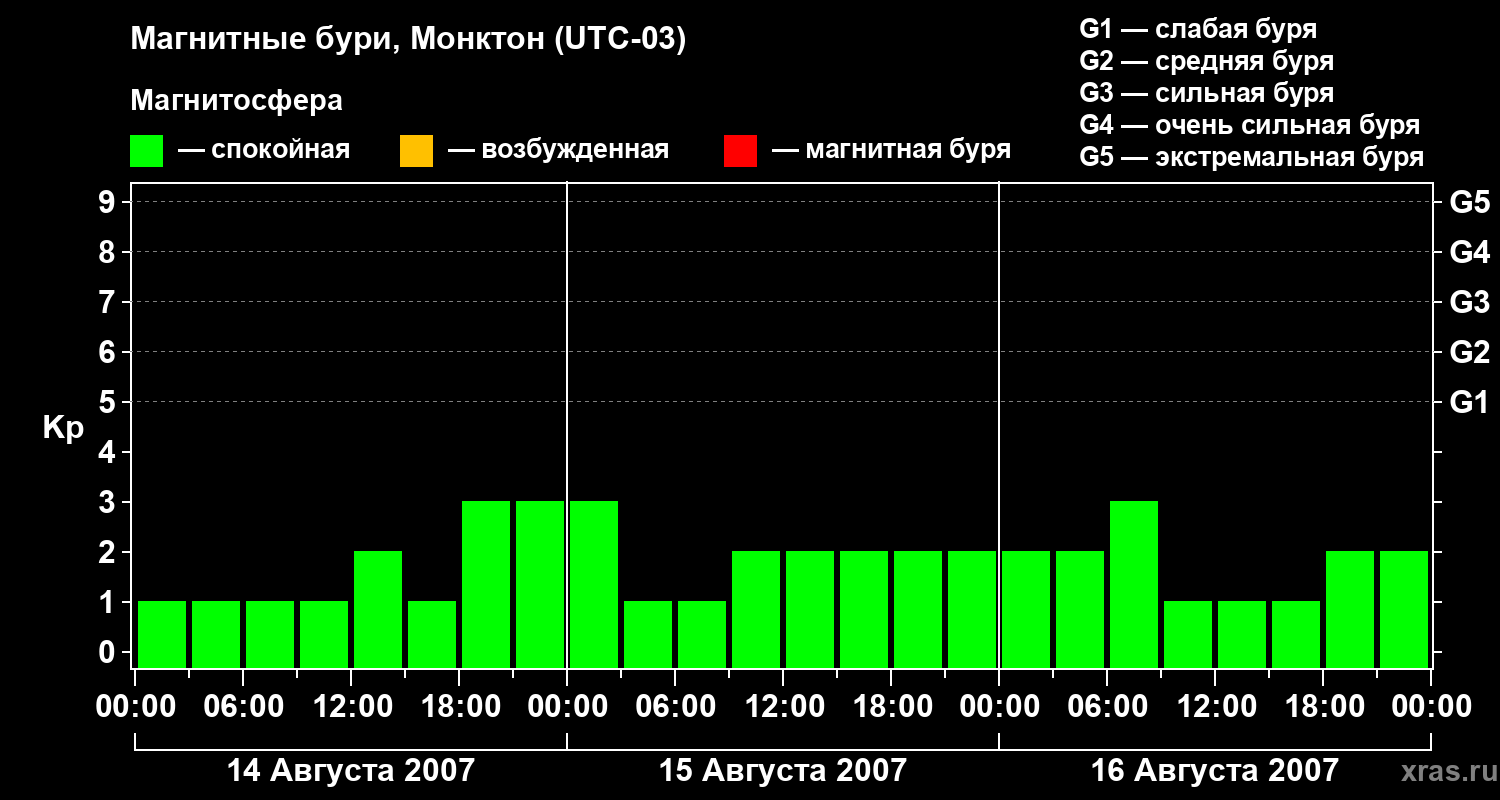 Магнитные бури в Монктоне — 16 августа 2007 года