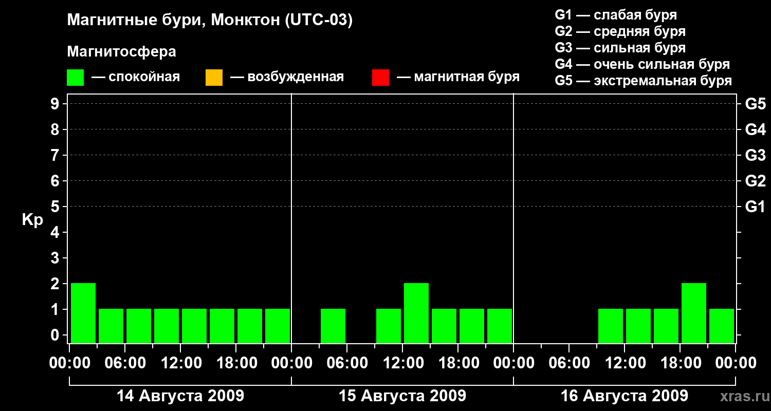 Магнитные бури в Монктоне — 16 августа 2009 года