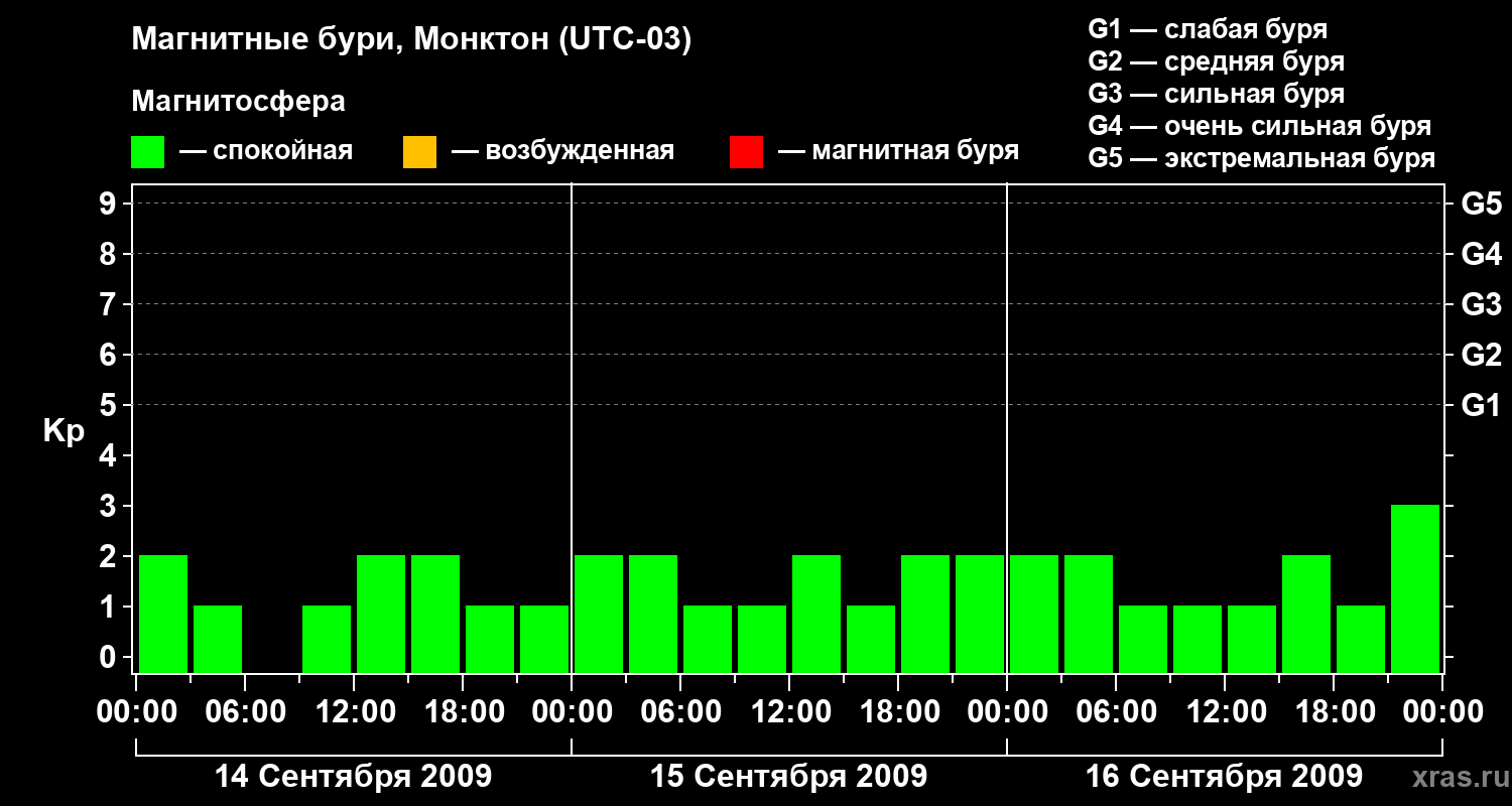 Магнитные бури в Монктоне — 16 сентября 2009 года
