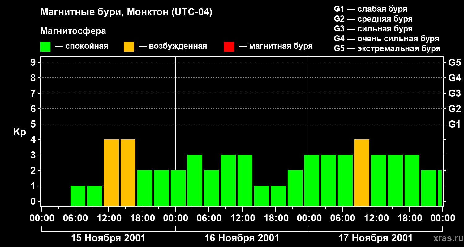 Магнитные бури в Монктоне 17 ноября 2001 года