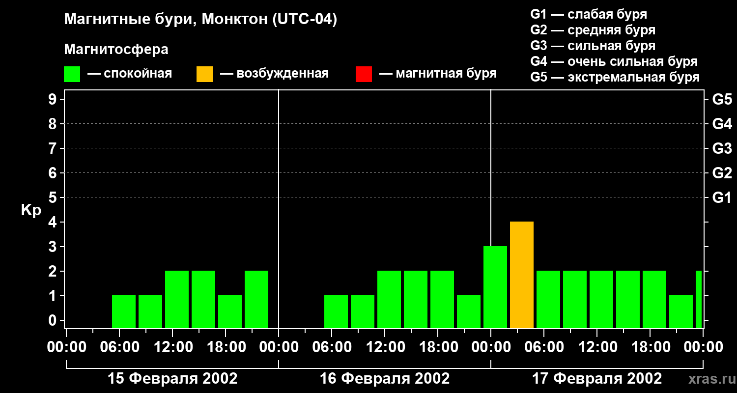 Магнитные бури в Монктоне — 17 февраля 2002 года