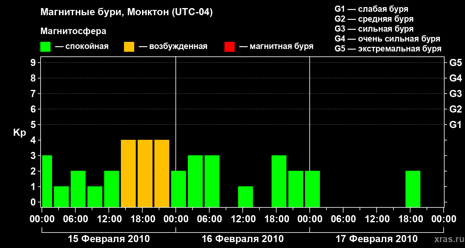 Магнитные бури в Монктоне — 17 февраля 2010 года