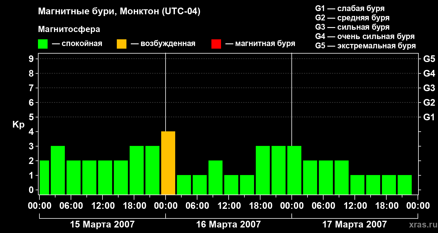 Магнитные бури в Монктоне — 17 марта 2007 года
