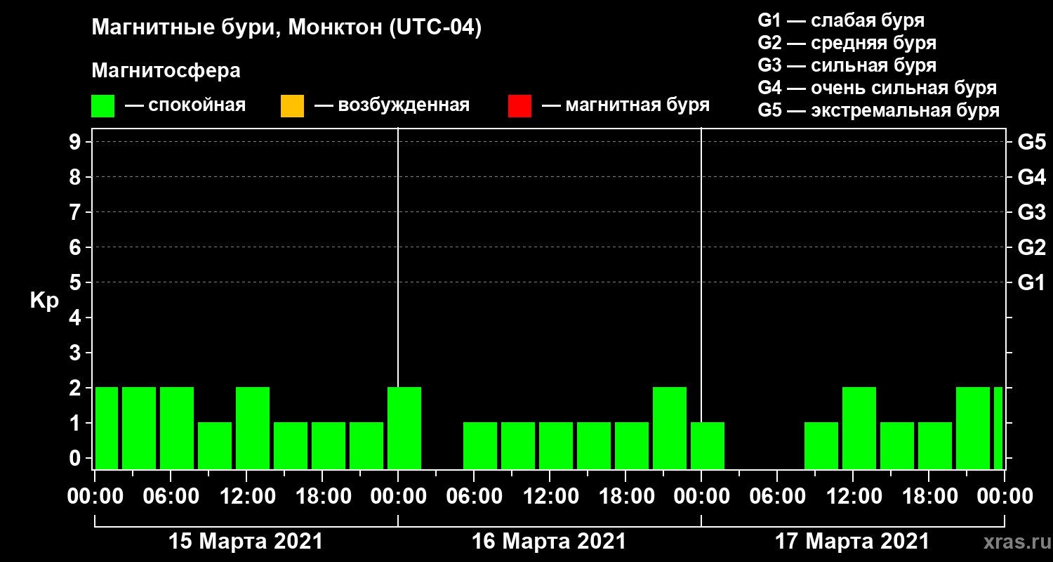 Магнитные бури в Монктоне — 17 марта 2021 года