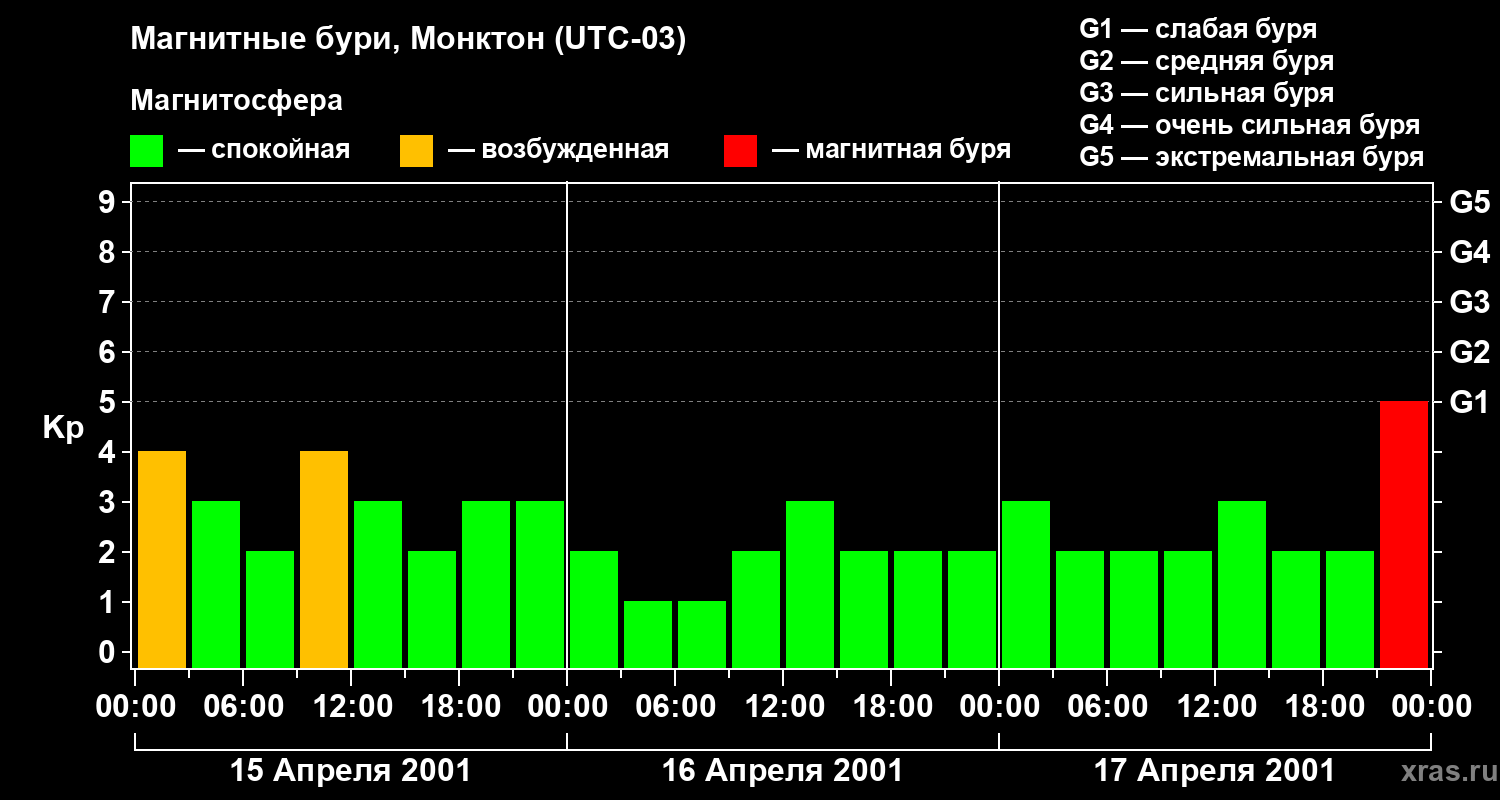 Магнитные бури в Монктоне — 17 апреля 2001 года