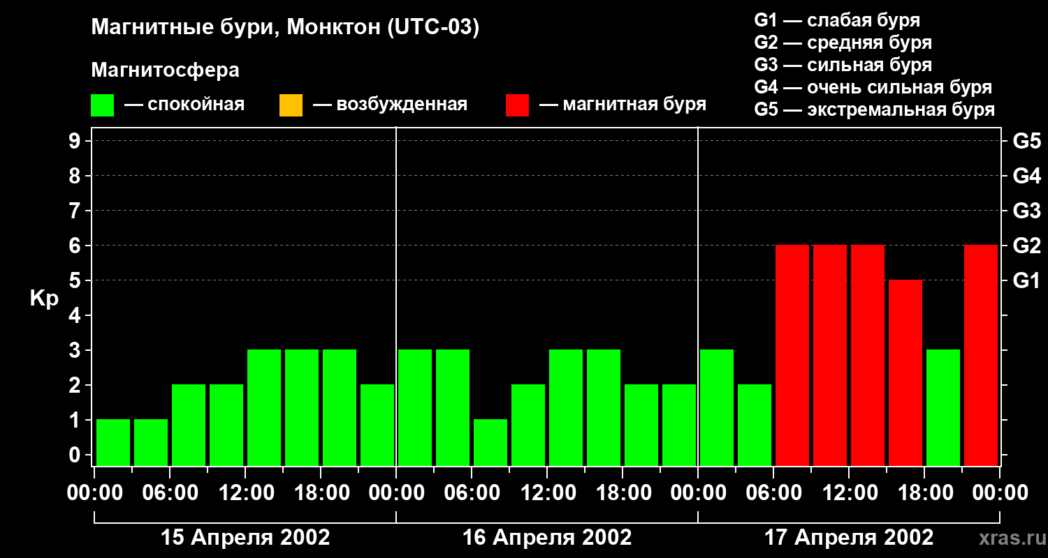 Магнитные бури в Монктоне — 17 апреля 2002 года