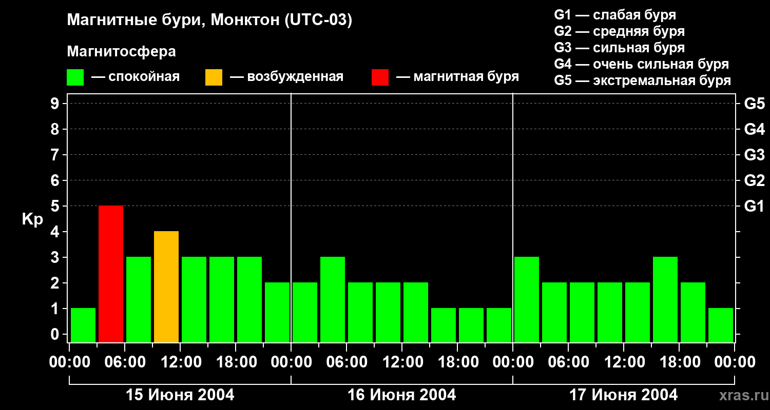 Магнитные бури в Монктоне — 17 июня 2004 года