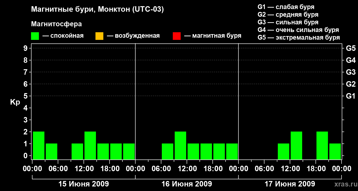 Магнитные бури в Монктоне — 17 июня 2009 года